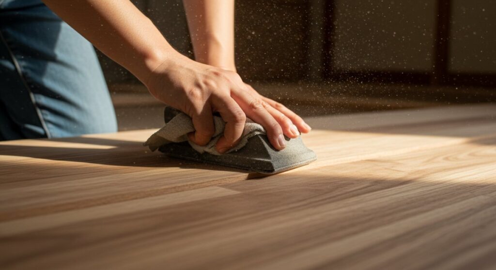 - 必要に応じて軽くサンディングして表面を整える。