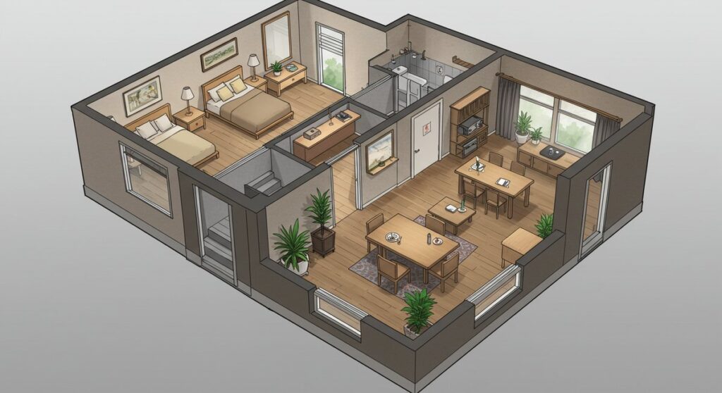 寝室を一階へ移す際は、快適さと安全性を両立させることが大切です。照明、換気、温度管理、プライバシー確保を優先課題にしてください。寝返りや起き上がりが楽なベッド配置や、夜間のトイレ動線も考慮します。