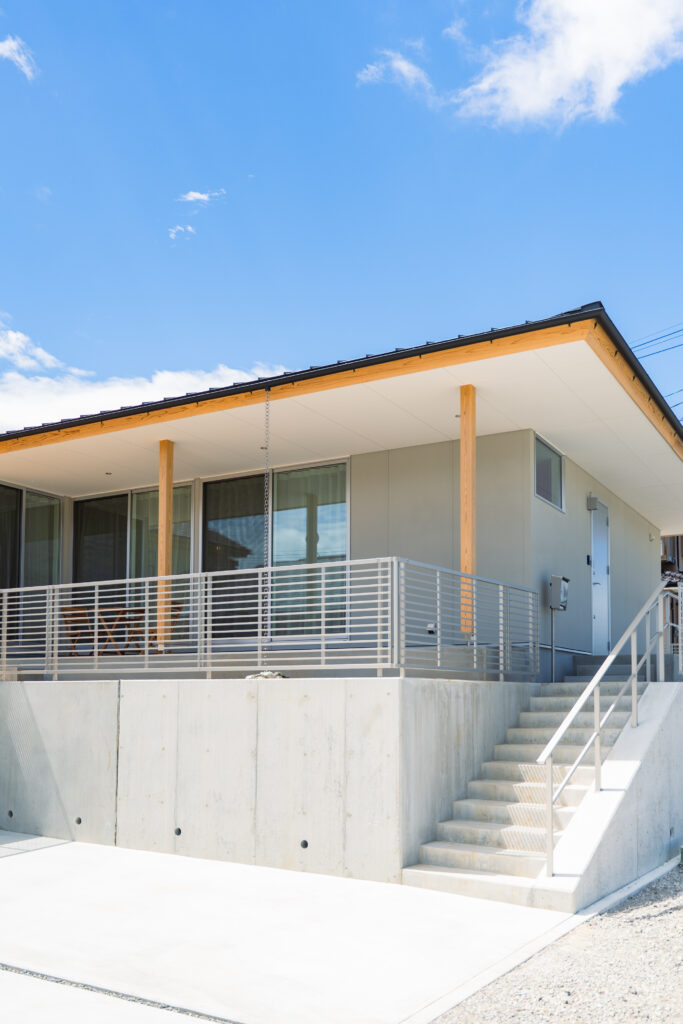 軒の深い平屋の家。