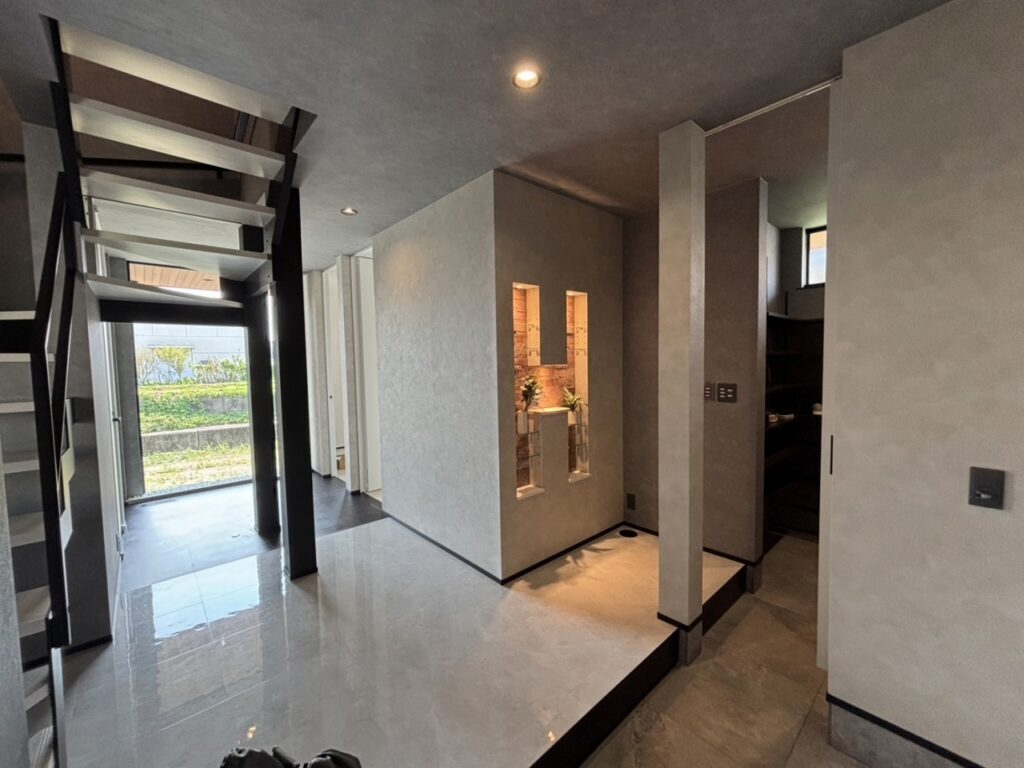 H型のニッチが印象的な玄関。