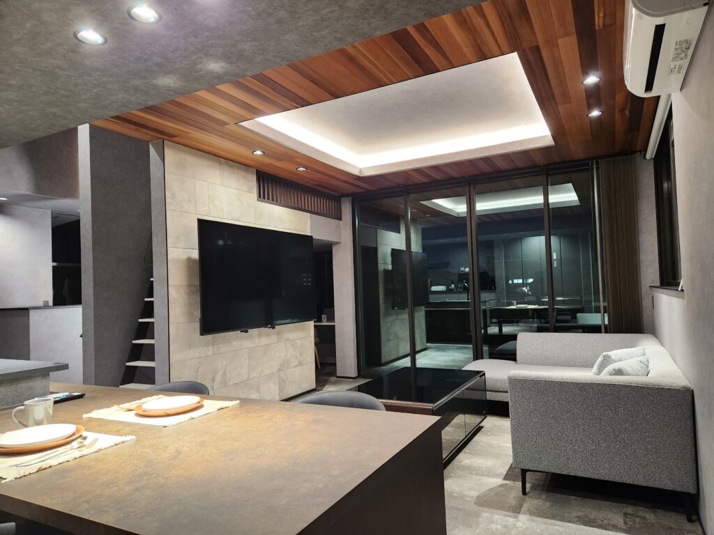 あえて色のトーンを暗めにした落ち着いた空間はホテルのような高級感を演出しています。