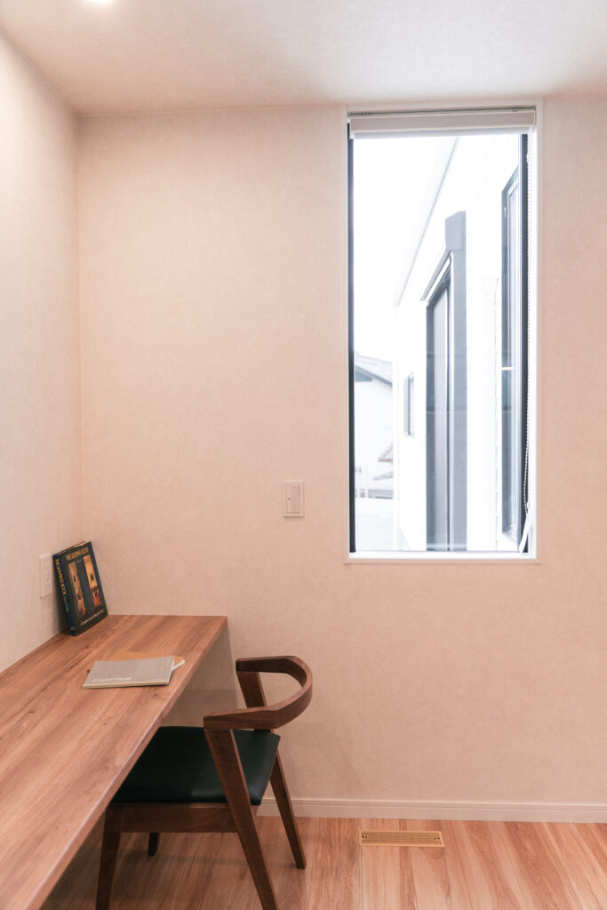部屋の一部にマグネット壁を設け、メモや作品を気軽に楽しめるスペースに。
