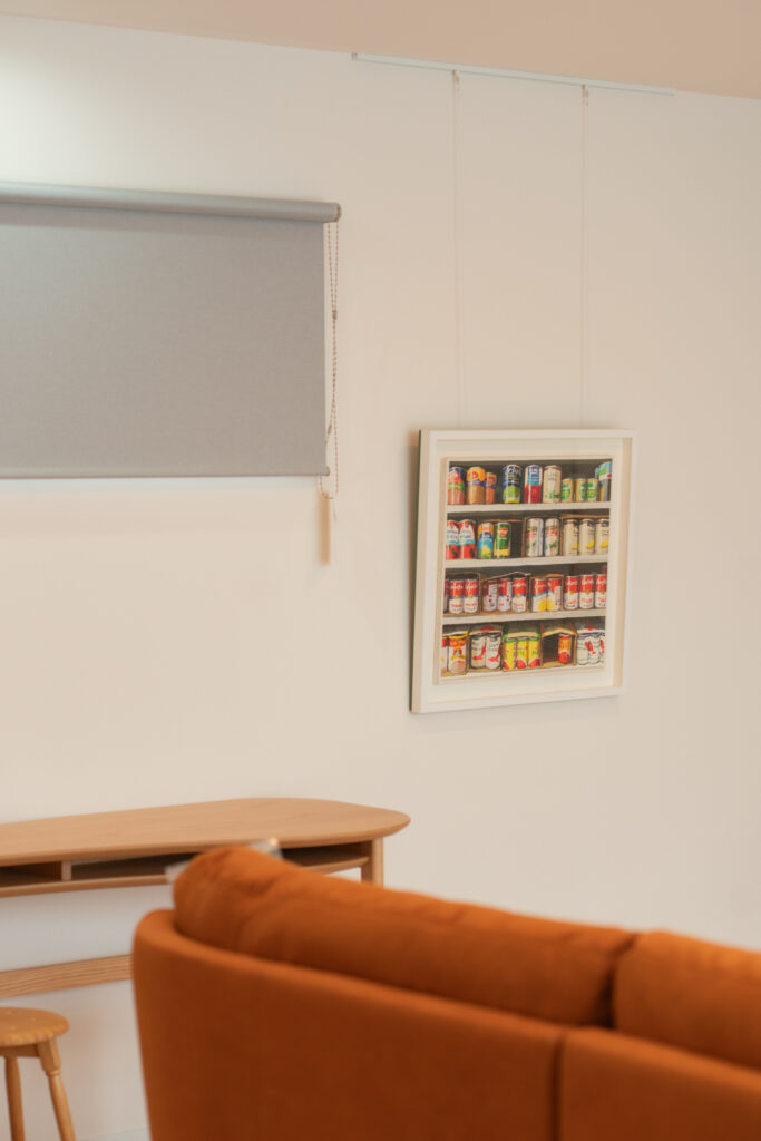 ピクチャーレールを採用し、壁に穴を開けずにアートや写真をディスプレイ。