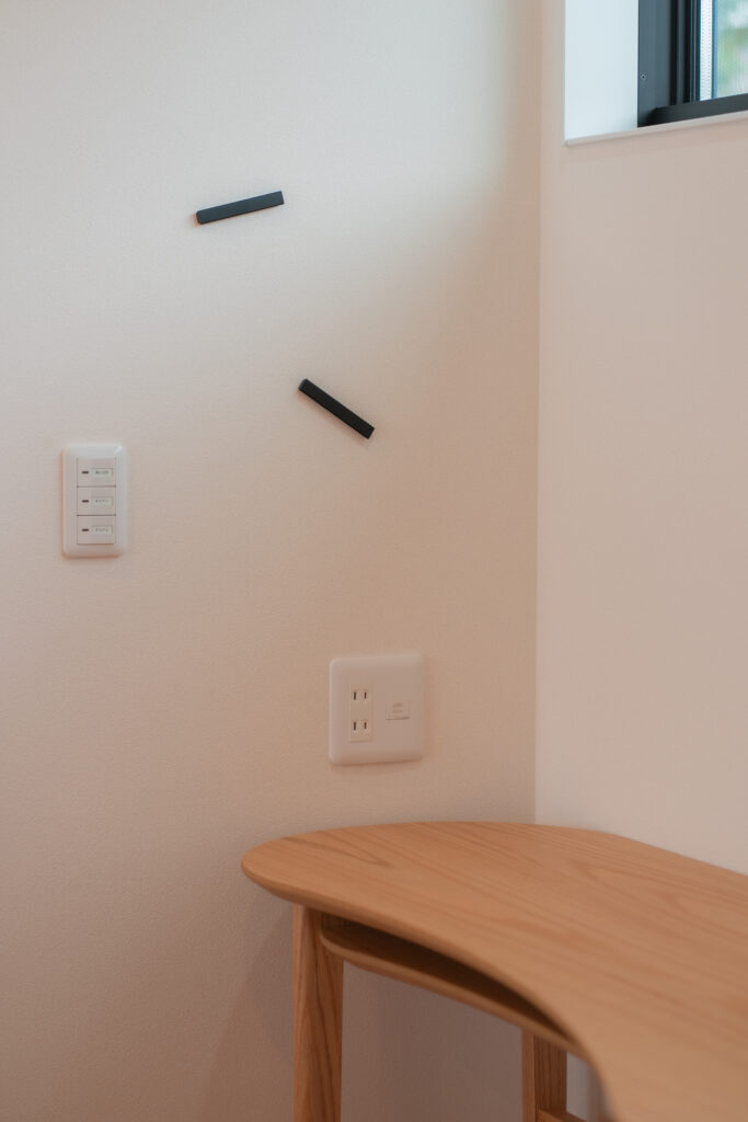 部屋の一部にマグネット壁を設け、メモや作品を気軽に楽しめるスペースに。